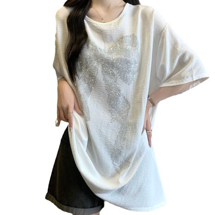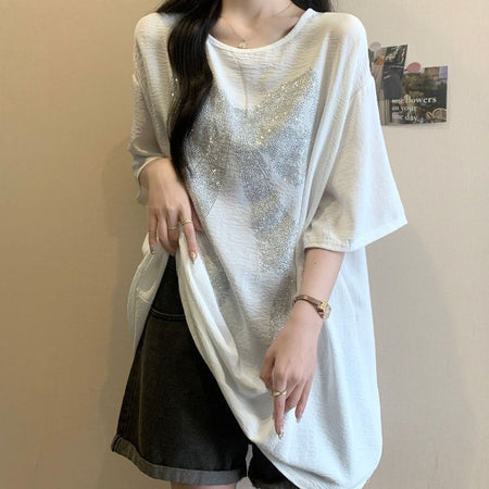 π Made with soft, breathable fabric, it features a short-sleeved design and sparkling butterfly rhinestones, adding a playful and elegant touch. The loose fit ensures comfort while maintaining a stylish silhouette.