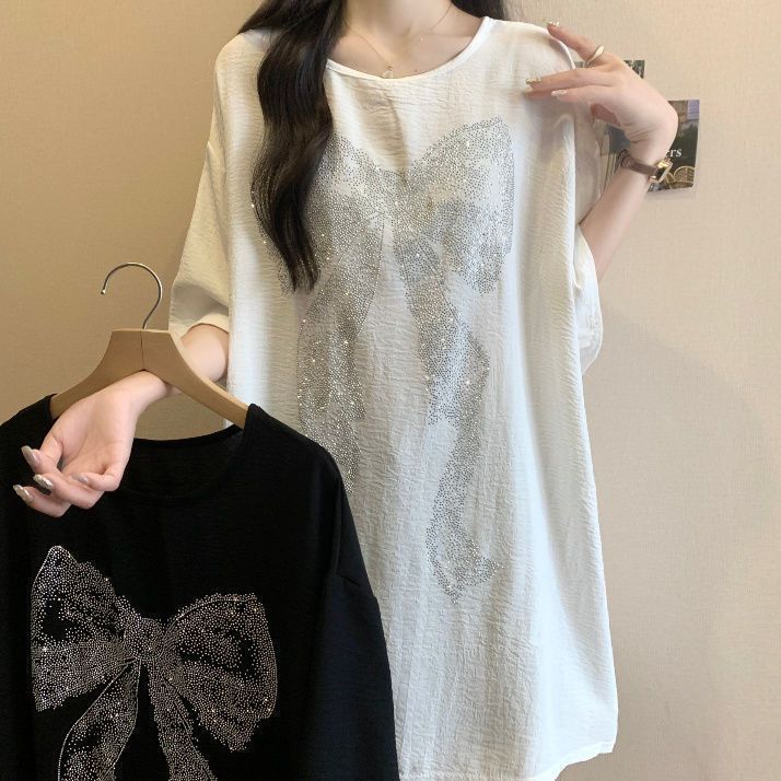 Key Features: Plus-size fit (1β150 kg), butterfly rhinestone design, short sleeves, loose & slimming, breathable & comfortable, trendy summer style