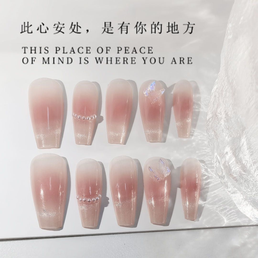 Cat’s Eye Pink Butterfly Fake Nails – 10pcs Handmade Set