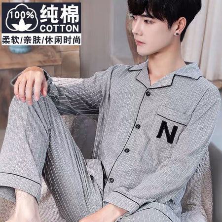 Pure Cotton Men’s Summer Pajamas – Short Sleeve Casual Set