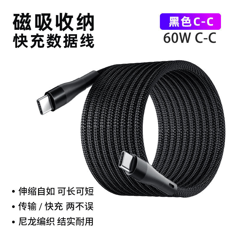 Its double Type-C interface offers universal use across multiple devices, while the flash charging feature 🚀 reduces waiting time so you can power up and go faster than ever! The unique magnetic storage design keeps your cable organized 🌀 and easily accessible — no more tangles or clutter on your desk or in your car 🚗.