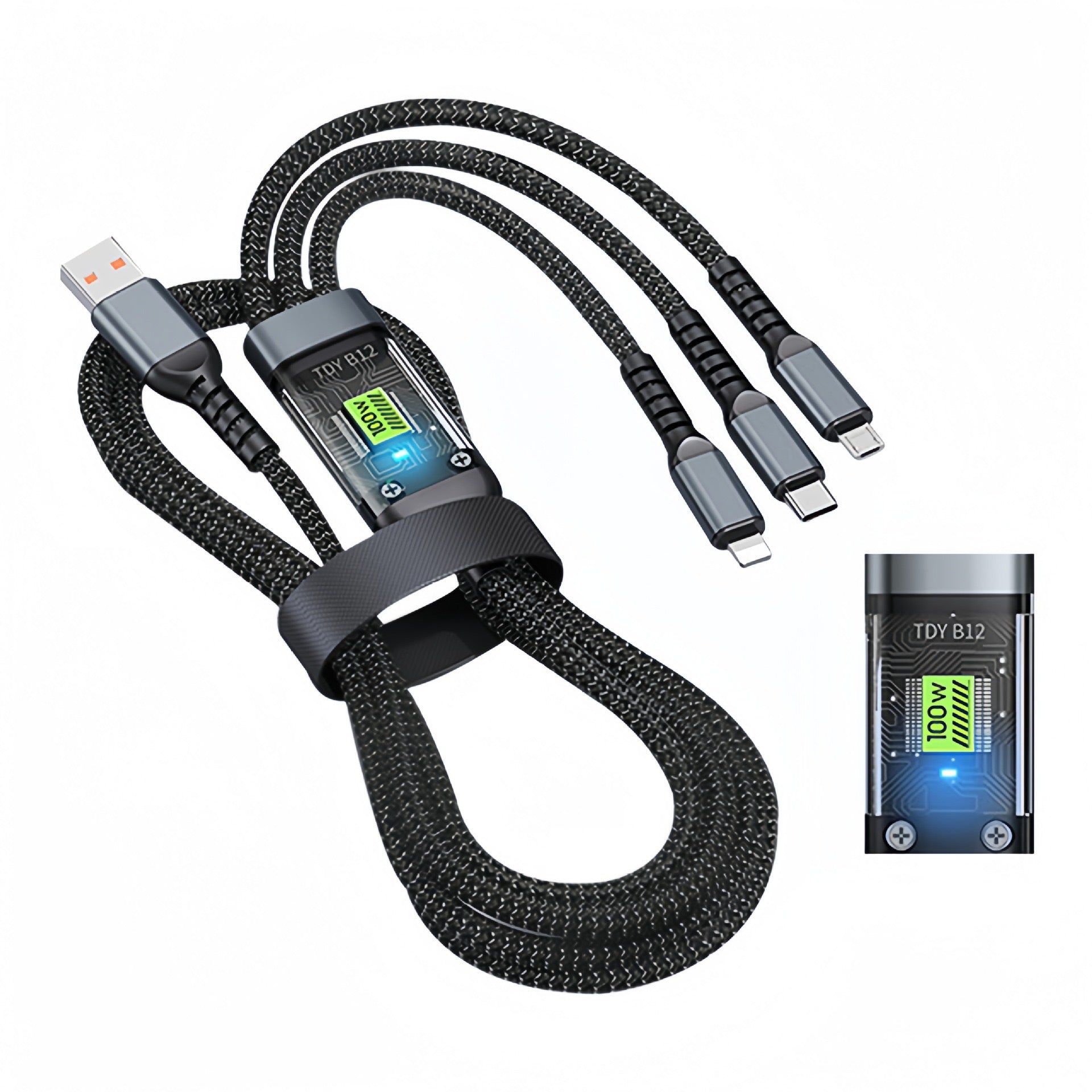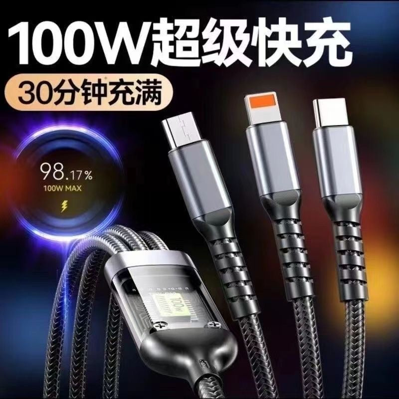 Charge multiple devices at once π with this 100W Super Fast Charging One-to-Three Data Cable, designed for Huawei, Apple (Lightning), and Android (Type-C & Micro USB) devices π±β‘. Featuring an intelligent digital display, it shows real-time charging power, helping you monitor your deviceβs charging status instantly π§ π’.