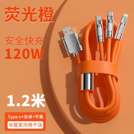 120W 3-in-1 Fast Charging Car Data Cable USB