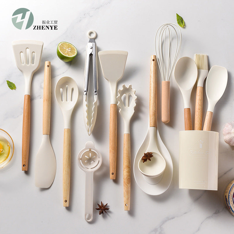 14-Piece Lightweight Silicone Utensil Set β 750g Wooden
