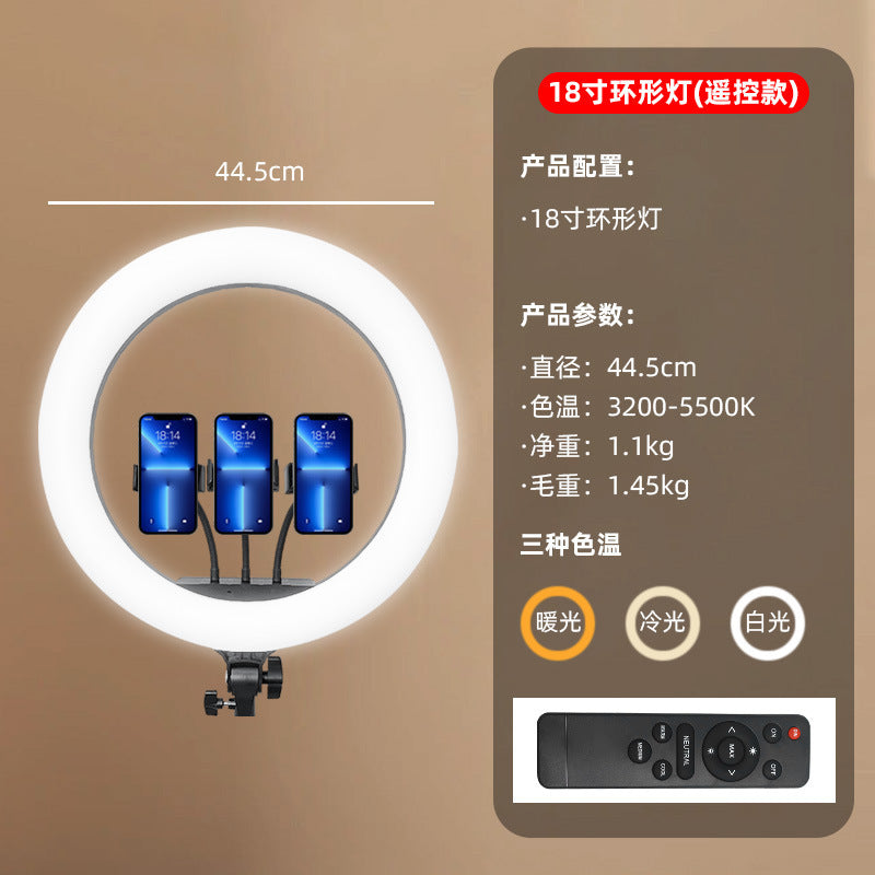 Enhance your live streaming, selfies, and beauty tutorials with this 18-inch large aperture ring light—perfect for photography, skin rejuvenation, and professional-quality content creation.