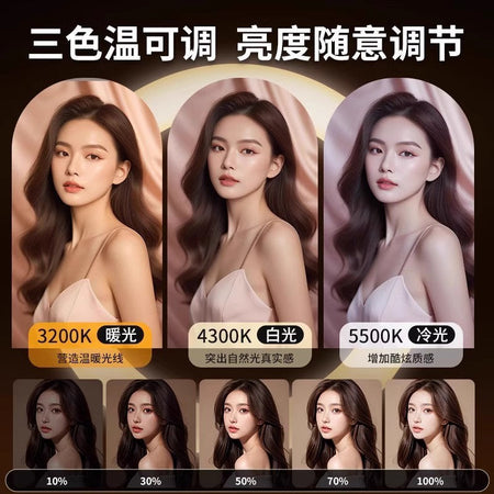Three adjustable camera positions allow for flexible framing, making it easy to shoot selfies, product videos, skincare tutorials, or live streams from different angles. Adjustable brightness and color temperature let you customize the lighting for any scenario or skin tone, creating professional-quality results every time.