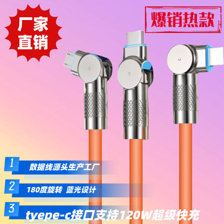 Experience convenience and speed with the ⚡ 180° Rotating Elbow Super Fast Charging Cable, specially designed for Apple 🍎, Android 🤖, and Type-C devices 🔋. Its innovative rotating elbow head 💡 allows you to charge your device while comfortably holding it — perfect for gaming 🎮, watching videos 📺, or browsing the web 📱.