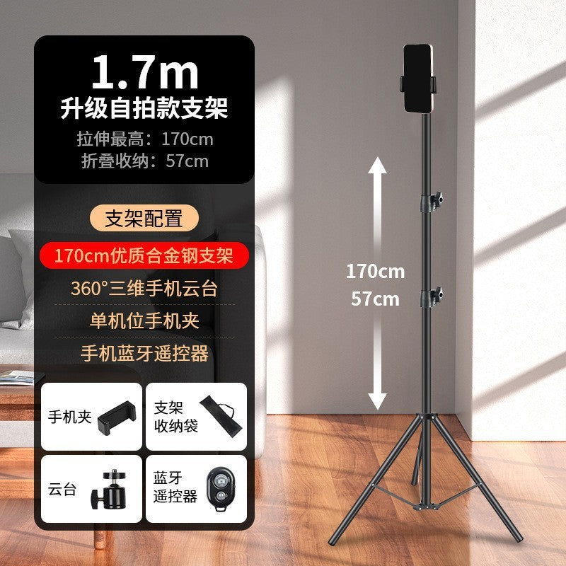 Enhance your live streaming, photography, and video content with this 2.1-meter portable floor tripod—perfect for mobile phones and fill lights. Designed for stability, flexibility, and professional results, it’s an essential accessory for content creators, vloggers, and photographers.