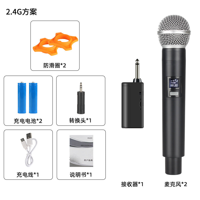 Take your performances to the next level with this 2.4G Wireless Microphone System featuring professional sound quality and a versatile one-to-two mic connection. Perfect for outdoor stages, home live streaming, karaoke, and sound card setups, this system delivers clear, interference-free audio. 🎤🎶