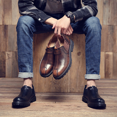 Men’s Low-Cut Leather Boots – British Style, Fashion Fit