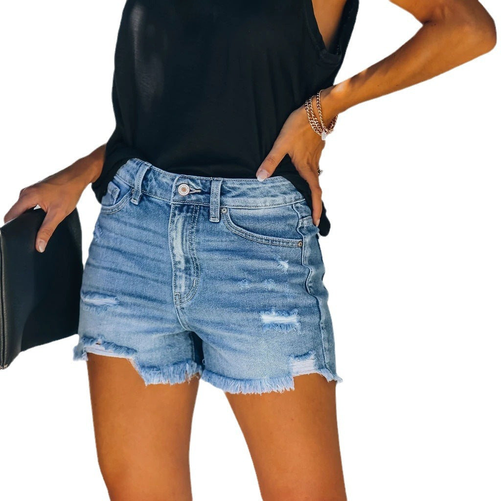 Ripped High Waist Denim Shorts Women