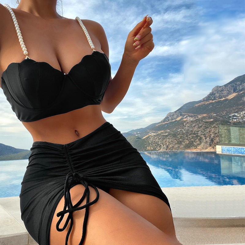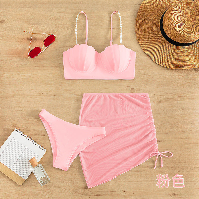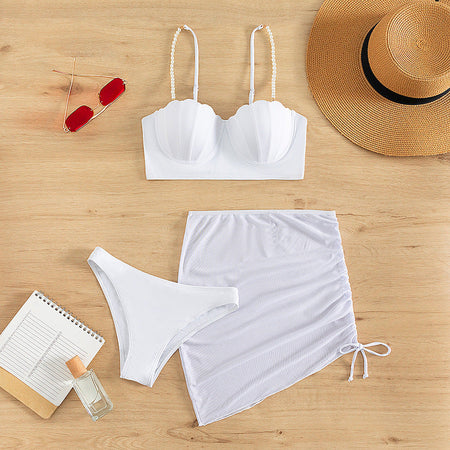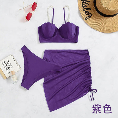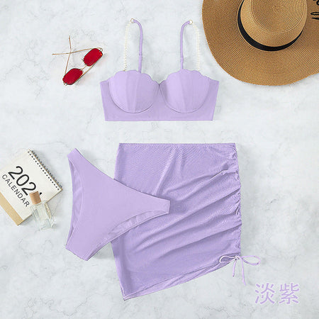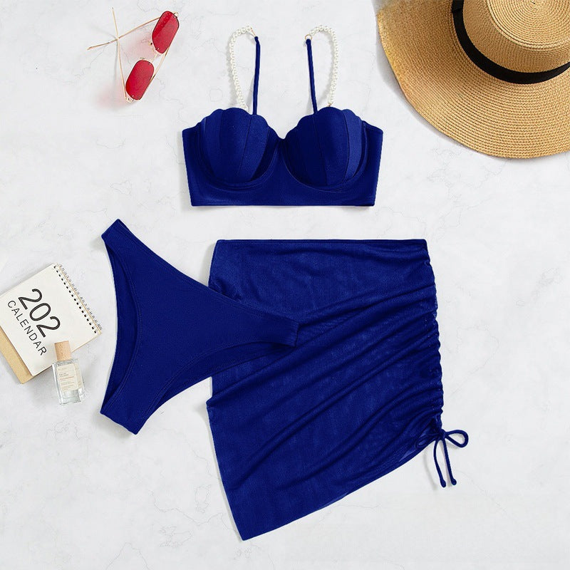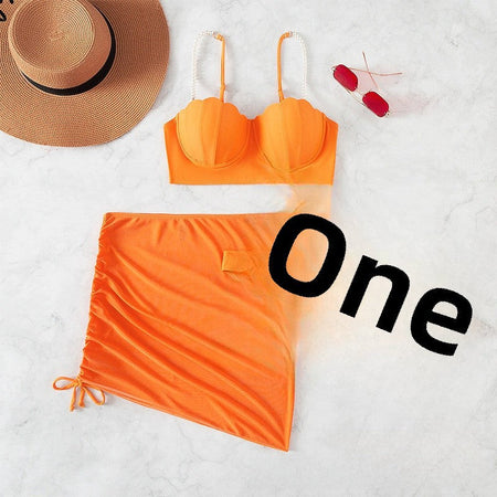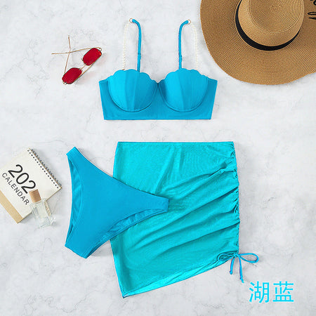 3-Piece Solid Color Bikini Set – Summer Sunscreen Swimwear