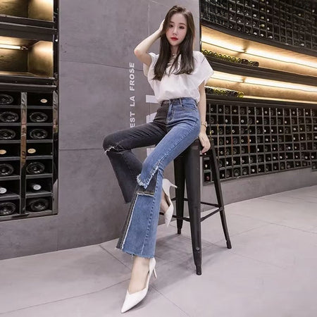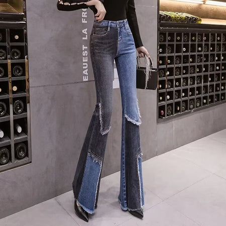 High-Waist Flared Jeans β Stretchy Frayed Wide-Leg Pants