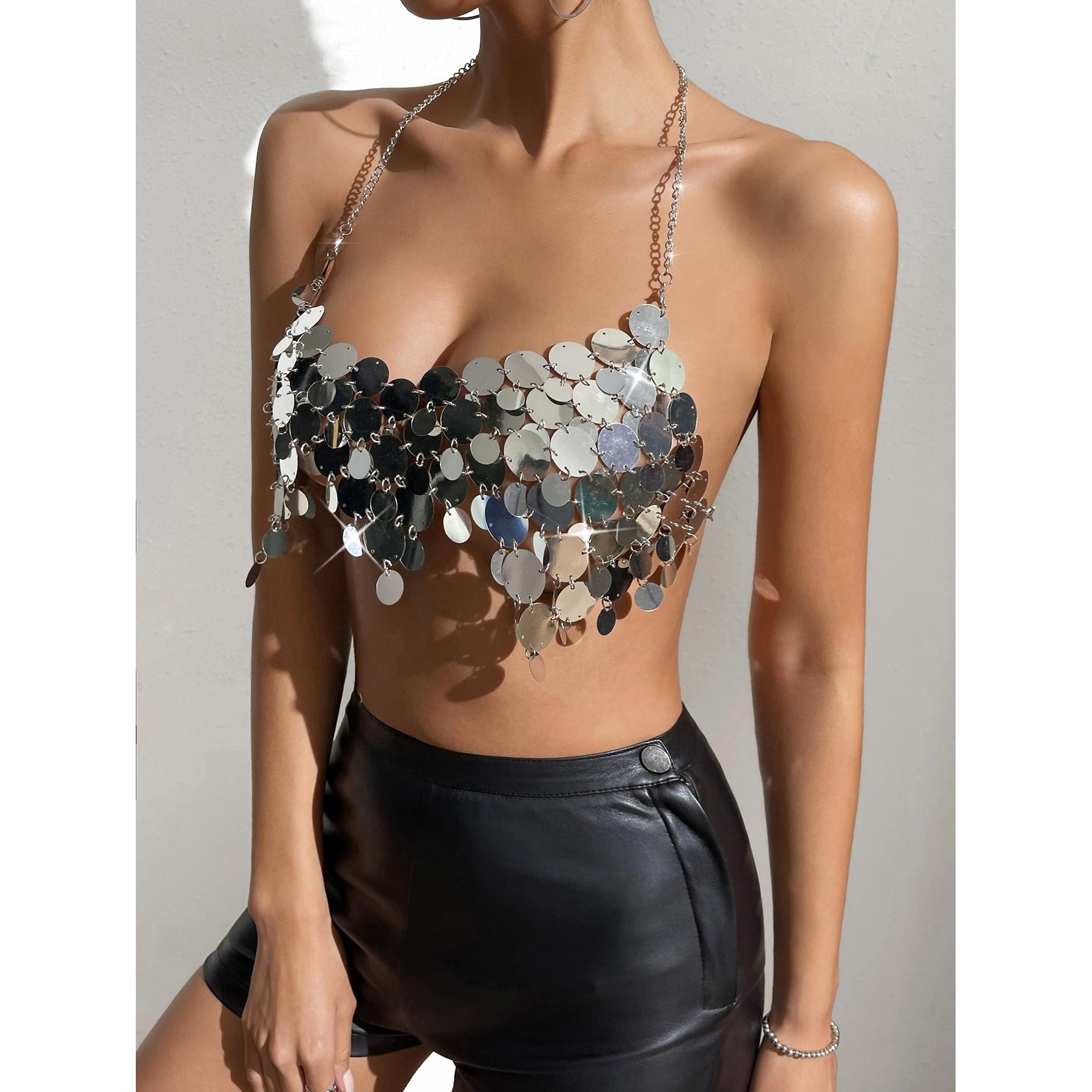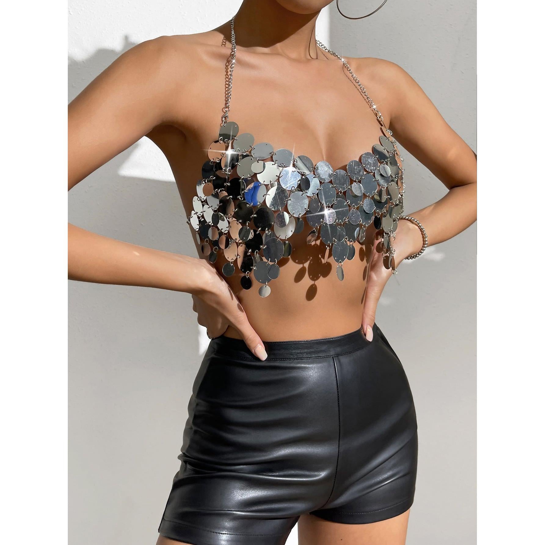 Women's Sequin Backless Chain Vest – Glamorous & Bold