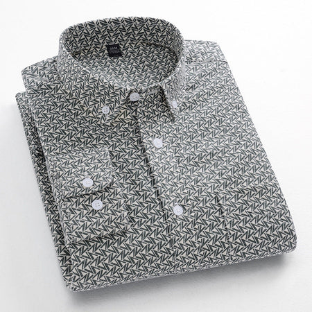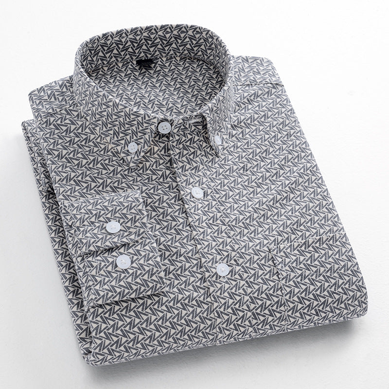 The soft Oxford fabric gives it structure, while the minimal print design and lapel collar add a refined edge. Whether worn buttoned up or open over a tee, this shirt works great for college, coffee dates, or casual Fridays. ☕📚
