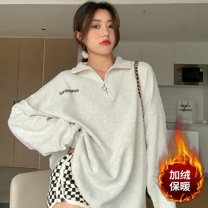 Women’s BF Style Letter Embroidery Pullover – Fleece Zip Jacket