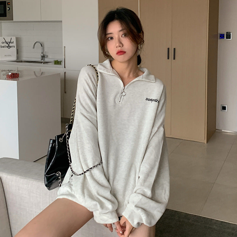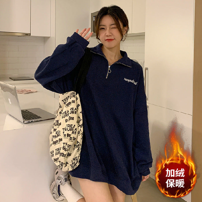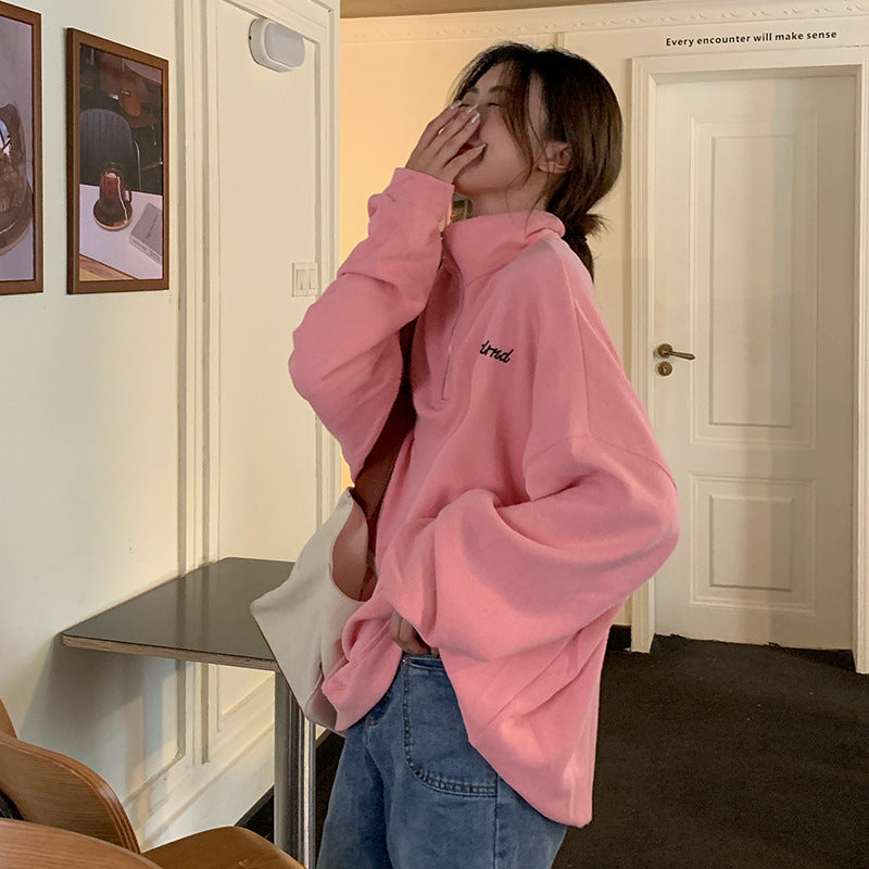 Step into cozy-chic fashion with our BF Style Letter Embroidery Pullover Jacket. Designed for autumn and winter, this oversized sweatshirt keeps you warm while delivering a trendy streetwear vibe.