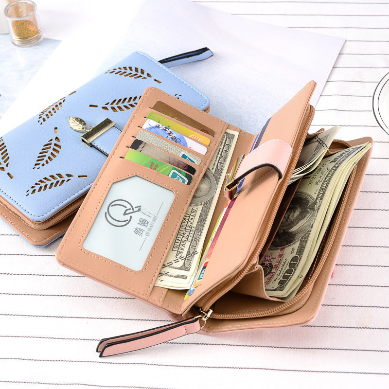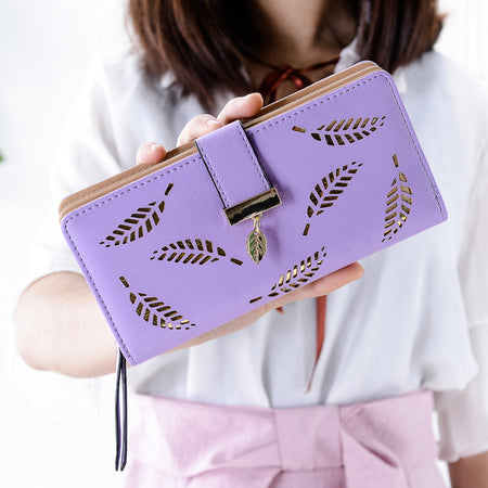 Make elegance easy with this π Hollow Leaf Long Wallet. With a clutch-style body, it fits your phone, cards, and cash while staying slim. The cut-out leaf design adds a trendy, feminine touch.