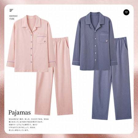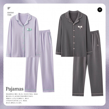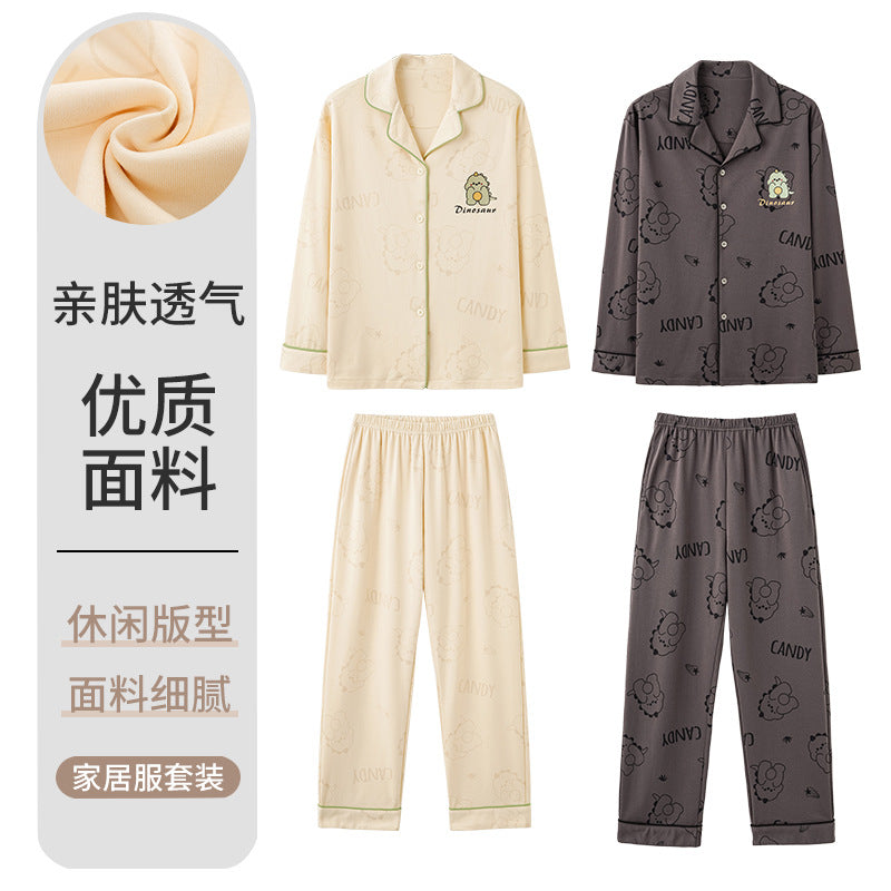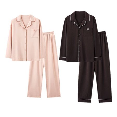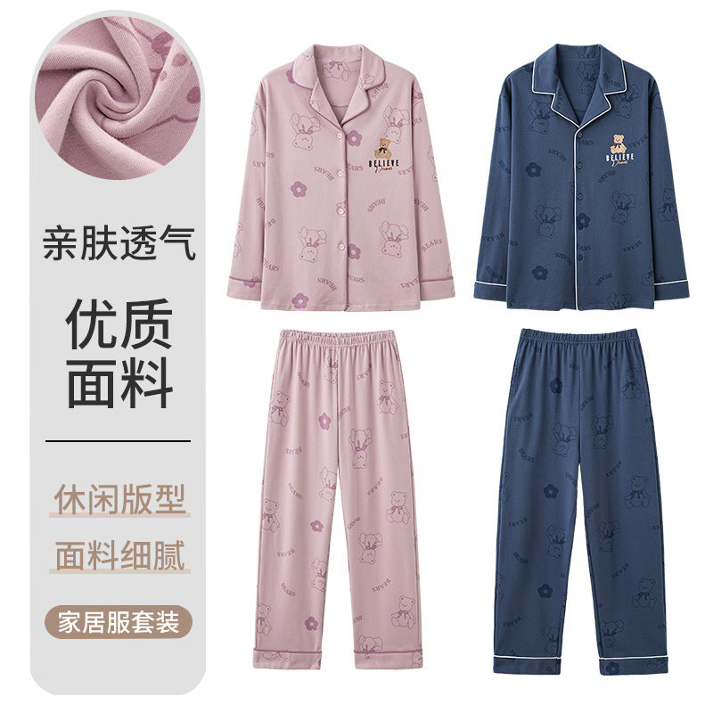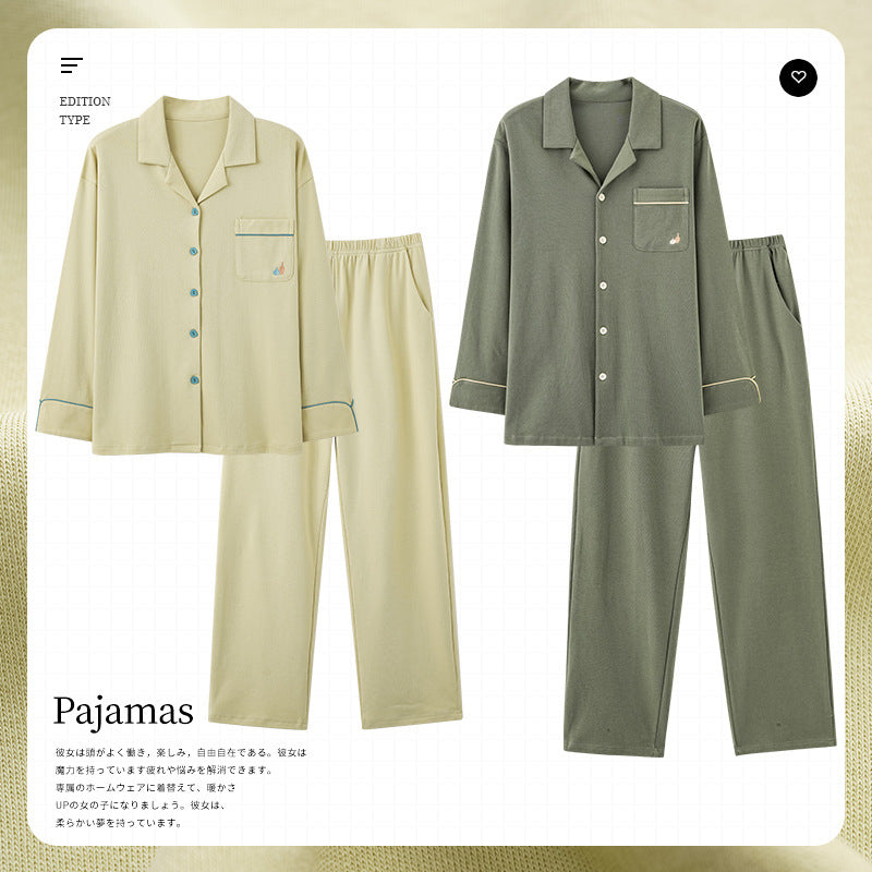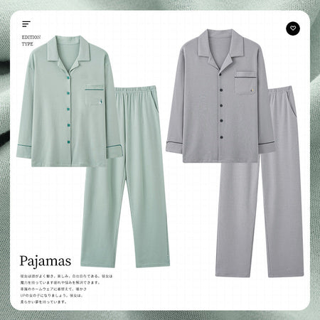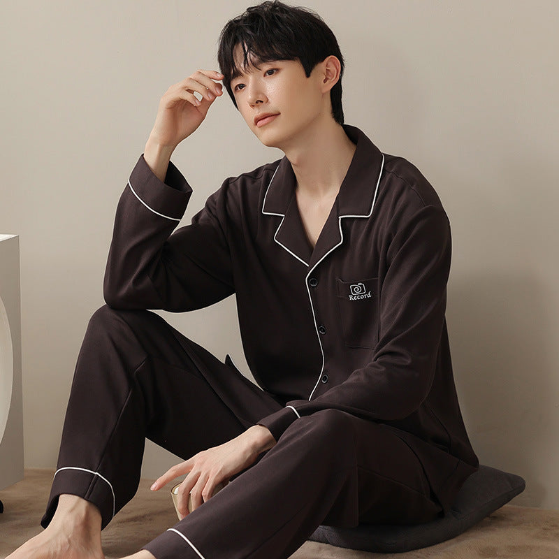 Knitted Cotton Men’s Pajamas – Long Sleeve Lapel Homewear Set