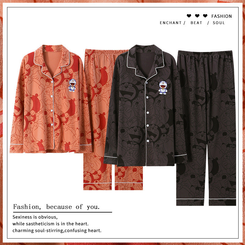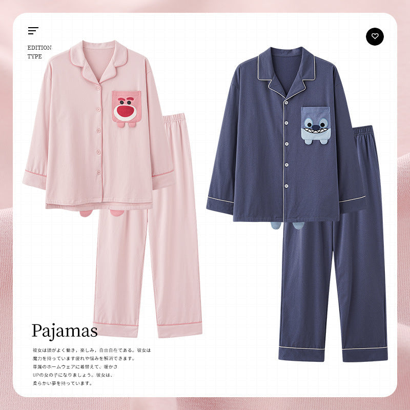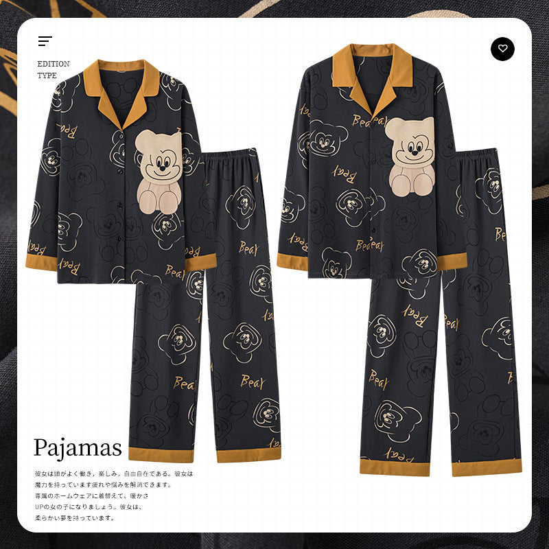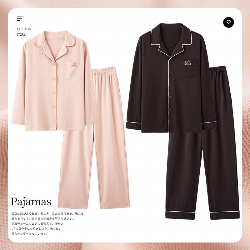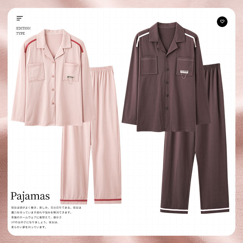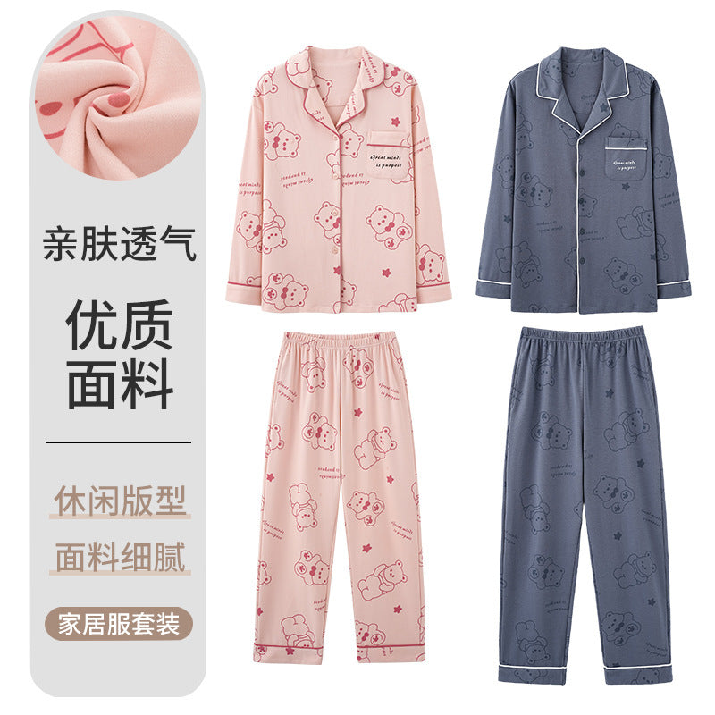 Knitted Cotton Men’s Pajamas – Long Sleeve Lapel Homewear Set