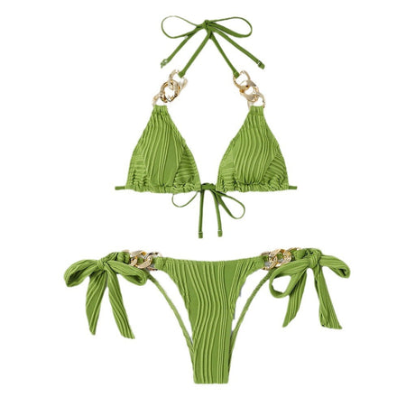 Crafted from a special textured fabric, it’s soft, stretchable, and quick-drying — ideal for long beach days, poolside lounging, or tropical getaways. Whether you're headed to the ocean or taking holiday photos, this bikini ensures you stand out in comfort and confidence.