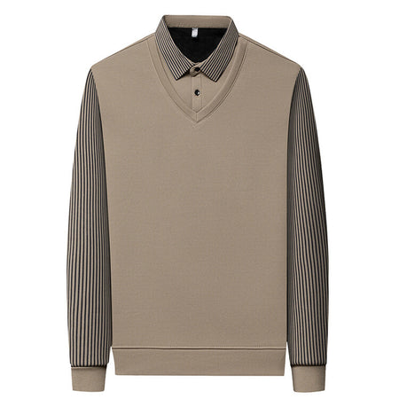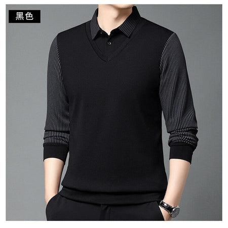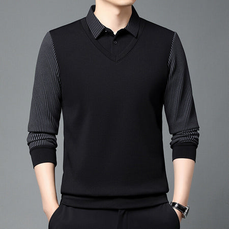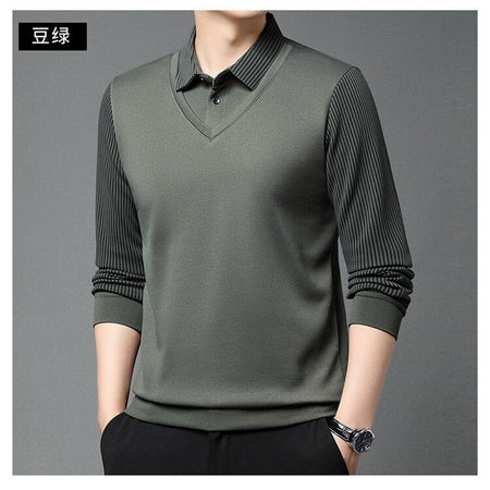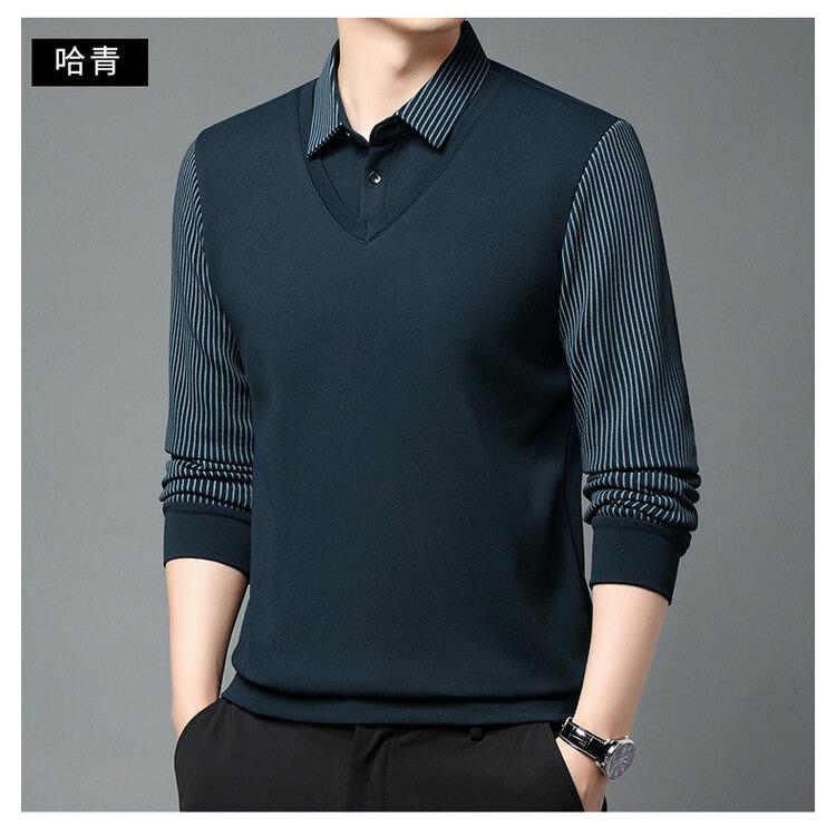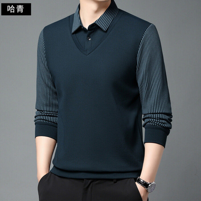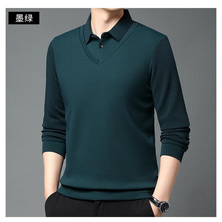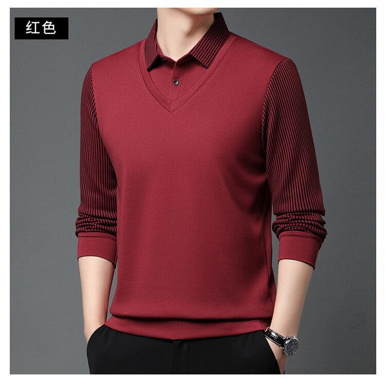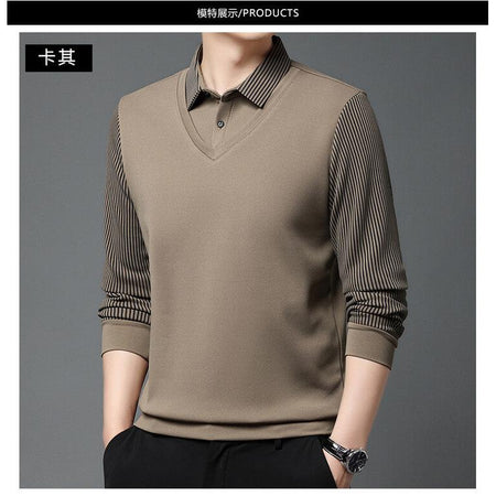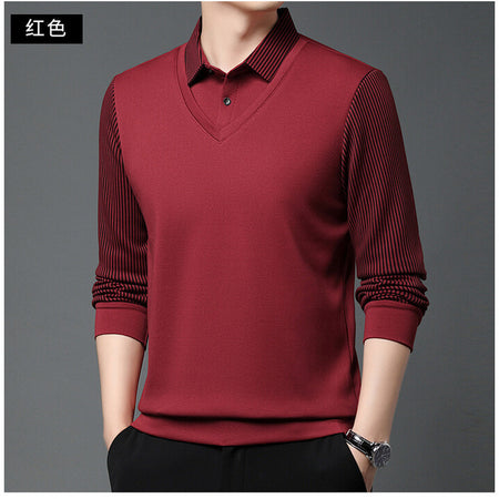 Men’s Lapel Long Sleeve Two-Piece Style T-Shirt