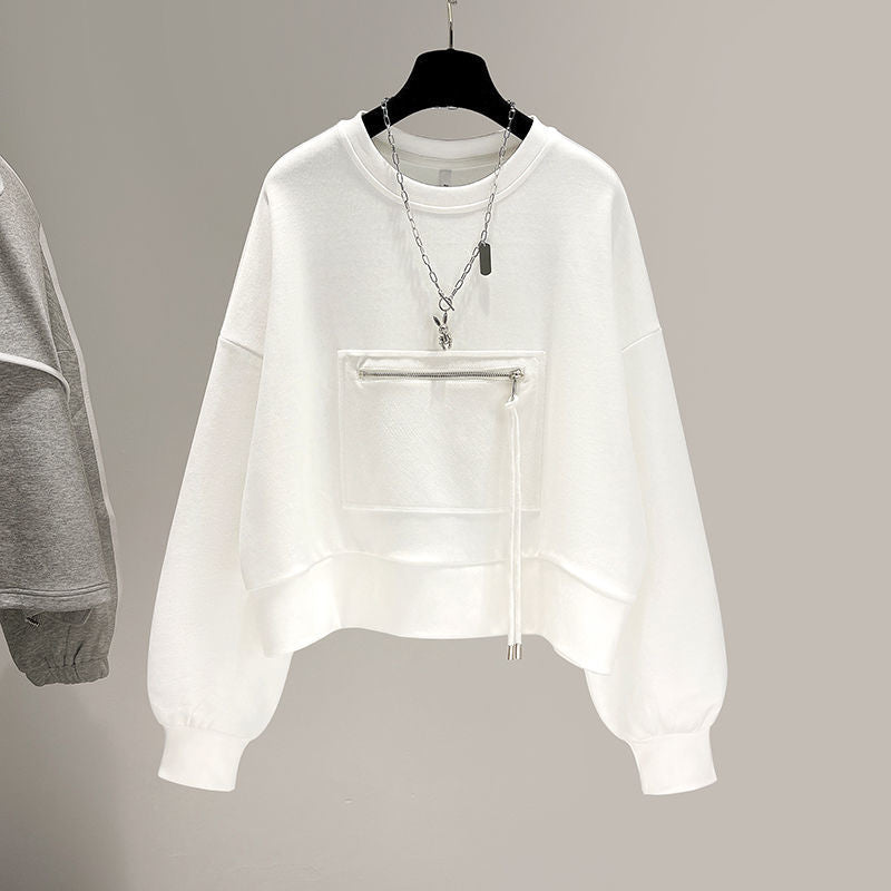 Functional meets trendy with our Loose Pocket Zipper Sweatshirt. This Korean-style pullover combines casual comfort with fashion-forward details like lace-up accents and a handy pocket design.
