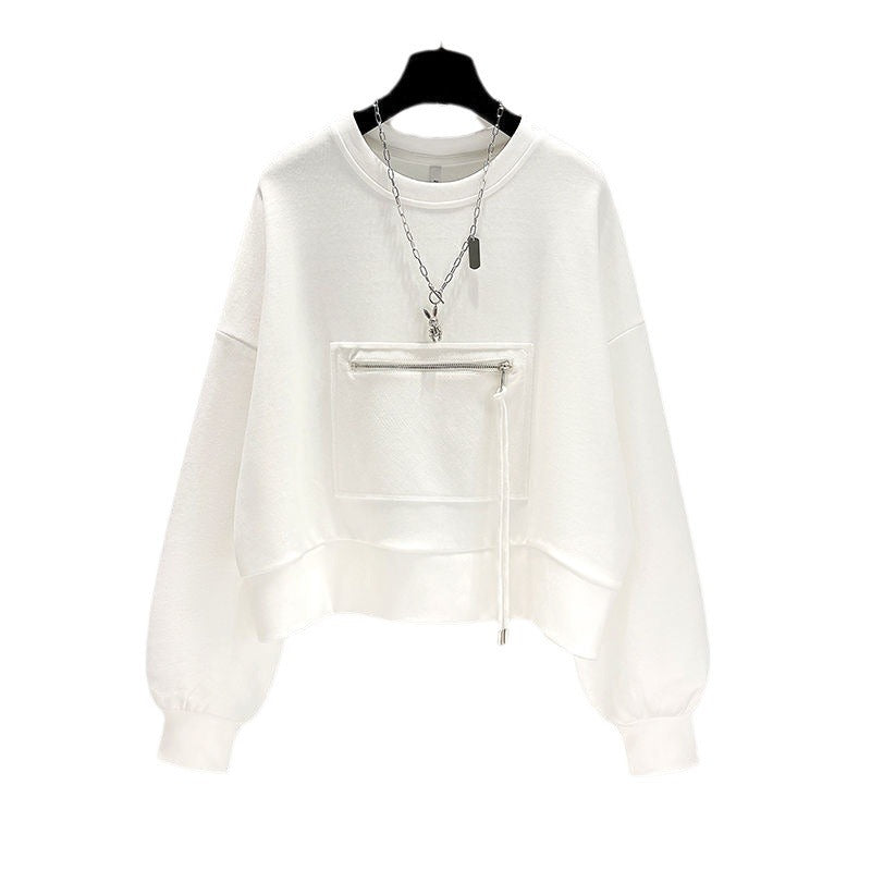 Women’s Zipper Pocket Sweatshirt – Loose Lace-Up Top