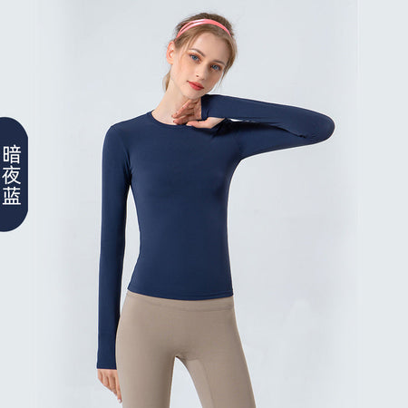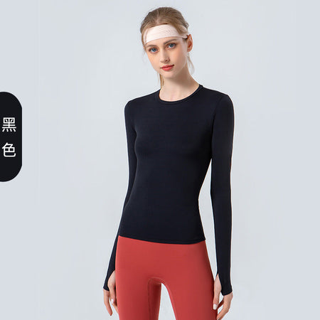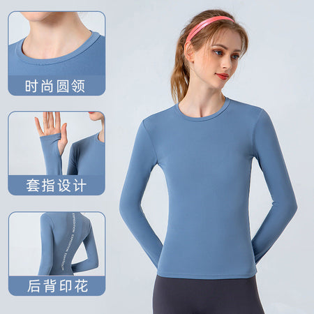 Women’s Long-Sleeve Yoga Top | Round Neck & Back Letter