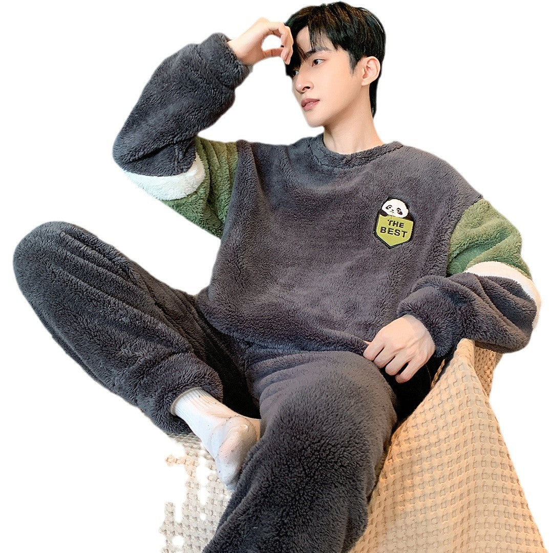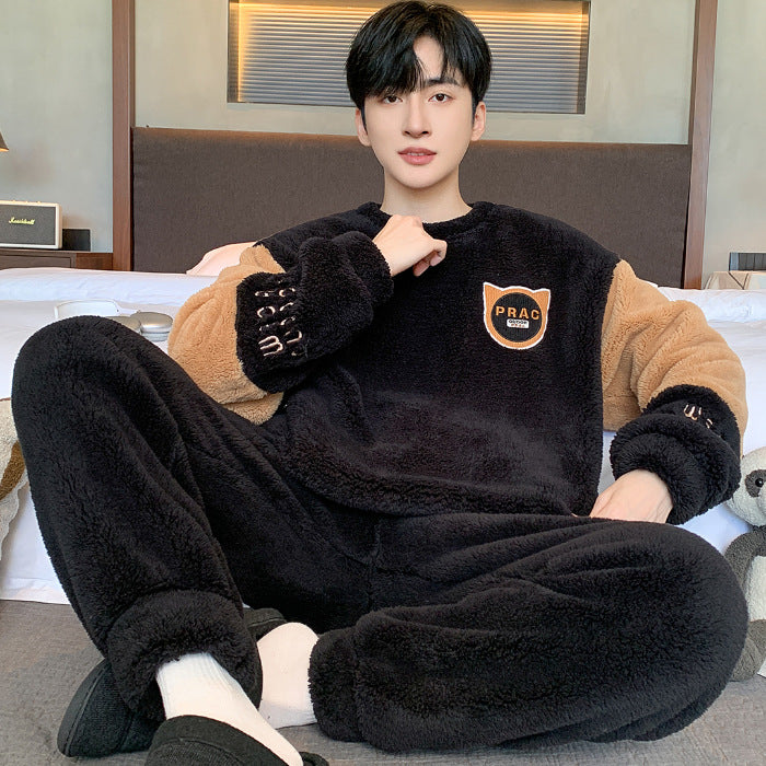 Men’s Coral Fleece Pajamas Winter Crewneck Warm Suit