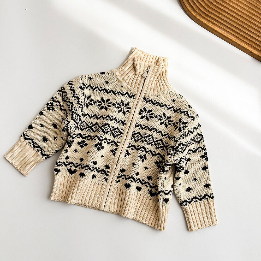 Boys’ High Neck Fair Isle Knitted Zipper Cardigan Autumn Winter