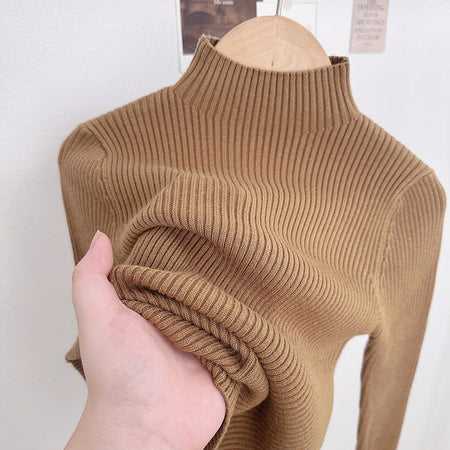 Korean-Style Half Turtleneck Kids’ Knitted Base Shirt