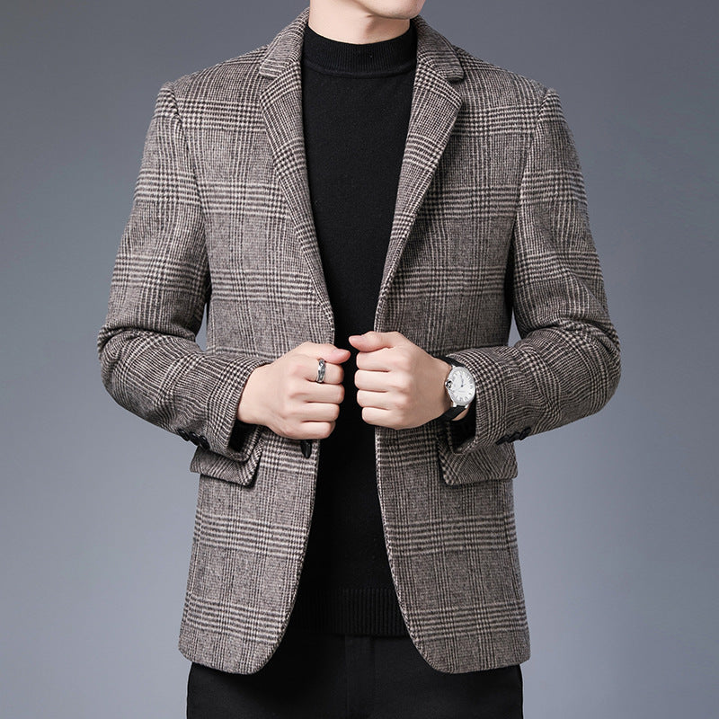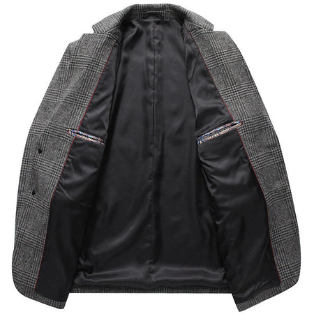 Designed for middle-aged men, this autumn/winter wool plaid suit jacket delivers warmth, durability, and refined style. Thickened for cold weather, it’s the perfect blend of practicality and gentlemanly fashion.