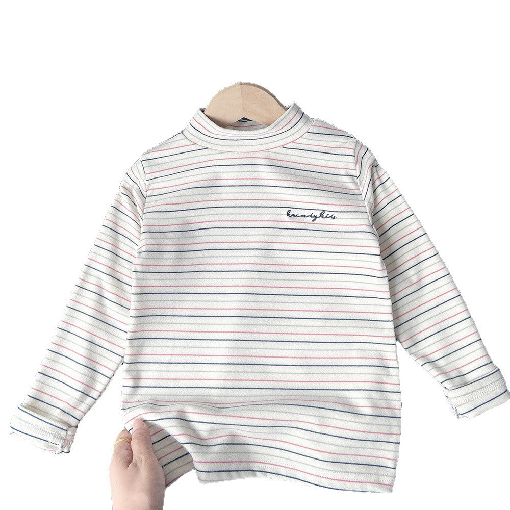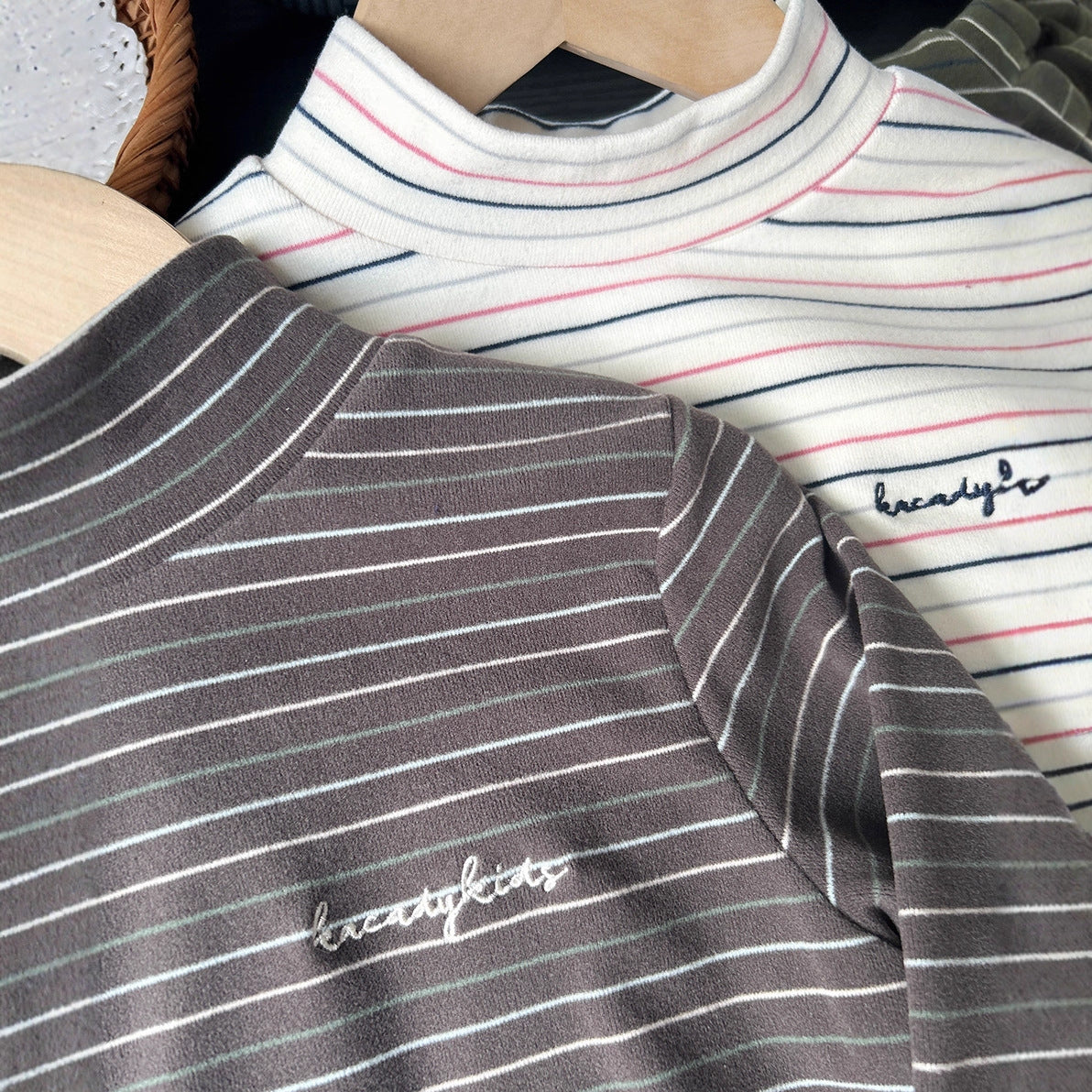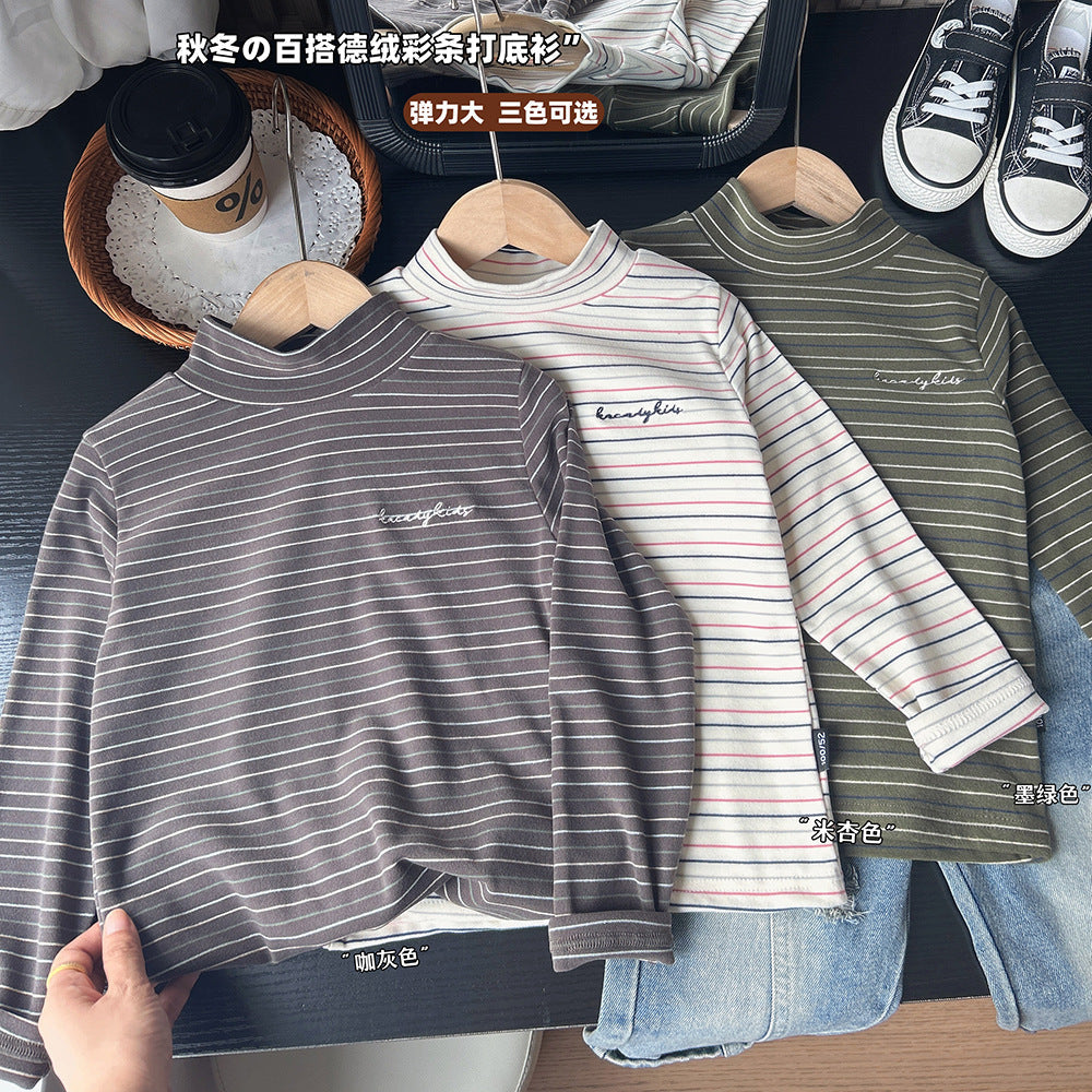 2025 Autumn Children's Striped Boys' Mid-High Collar T-Shirt