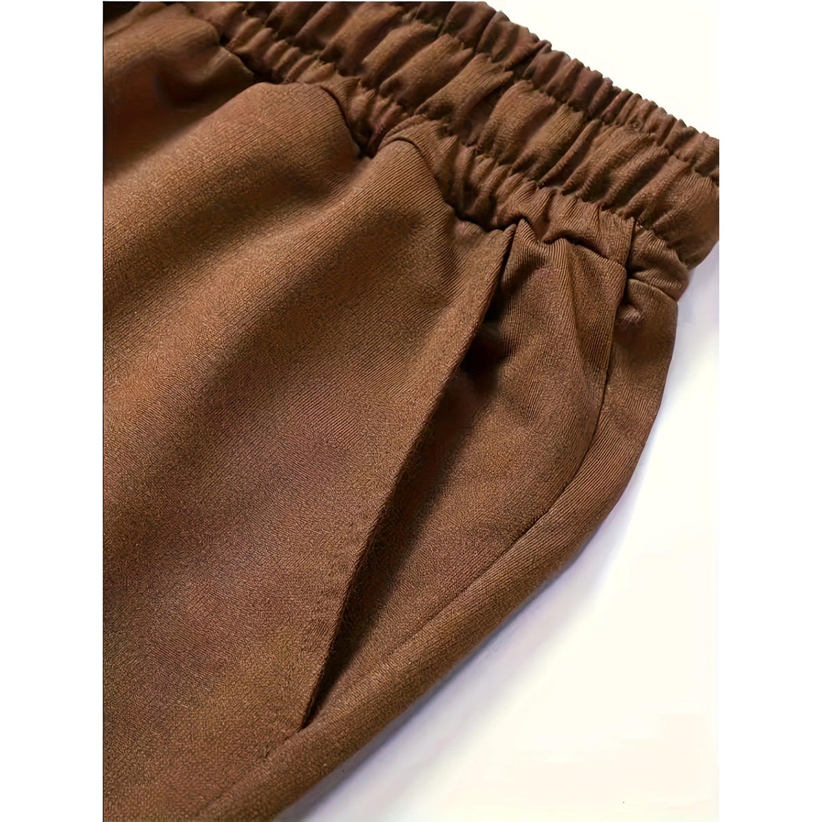 Boys Solid Color Pocketed Elastic Jogger Pants Set