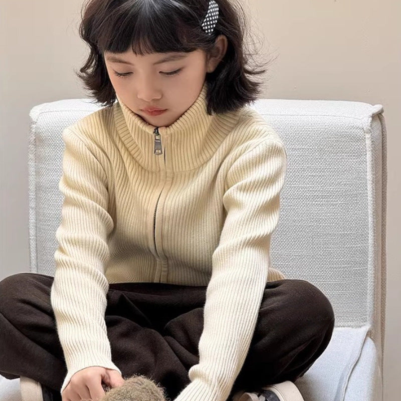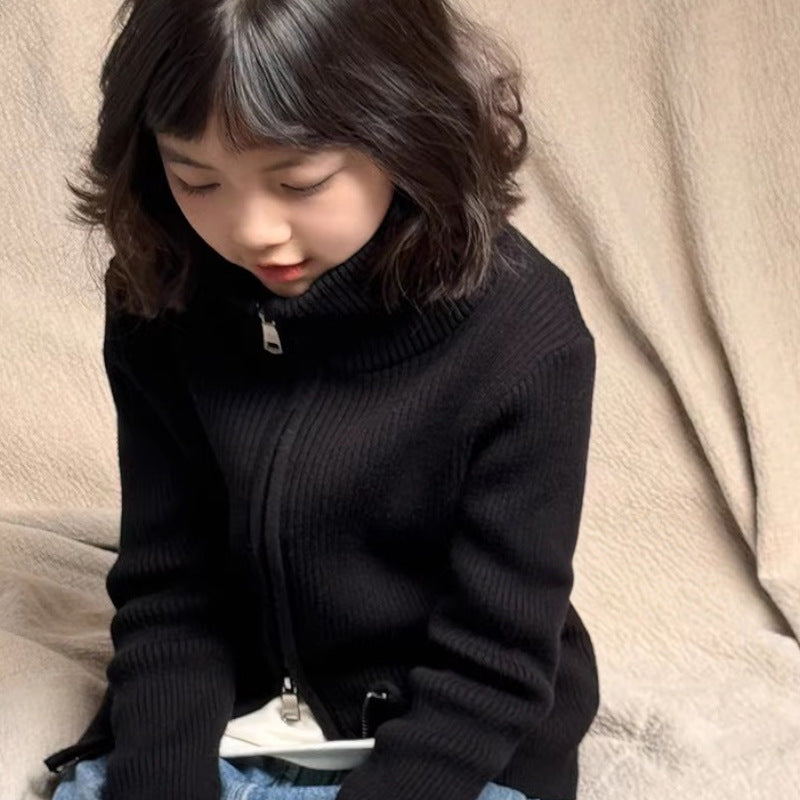 Keep your little fashionista 👧 cozy and chic with this autumn and winter turtleneck cardigan. Featuring a trendy double-ended zipper, it’s the easiest-to-match Korean-style sweater for girls.