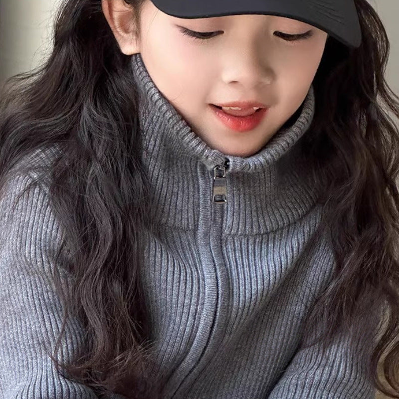 Girls’ Autumn Winter Turtleneck Knitted Cardigan Sweater