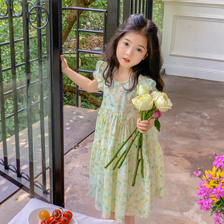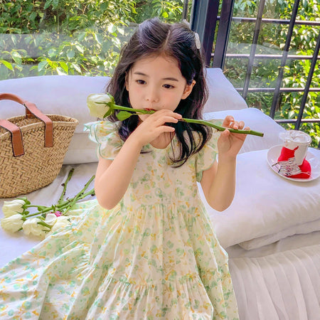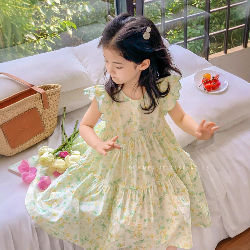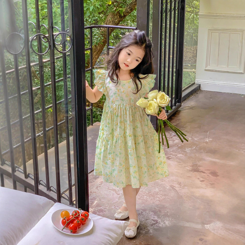2025 Girls’ Summer Flying Sleeve Floral Dress