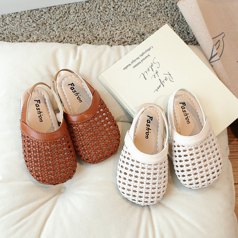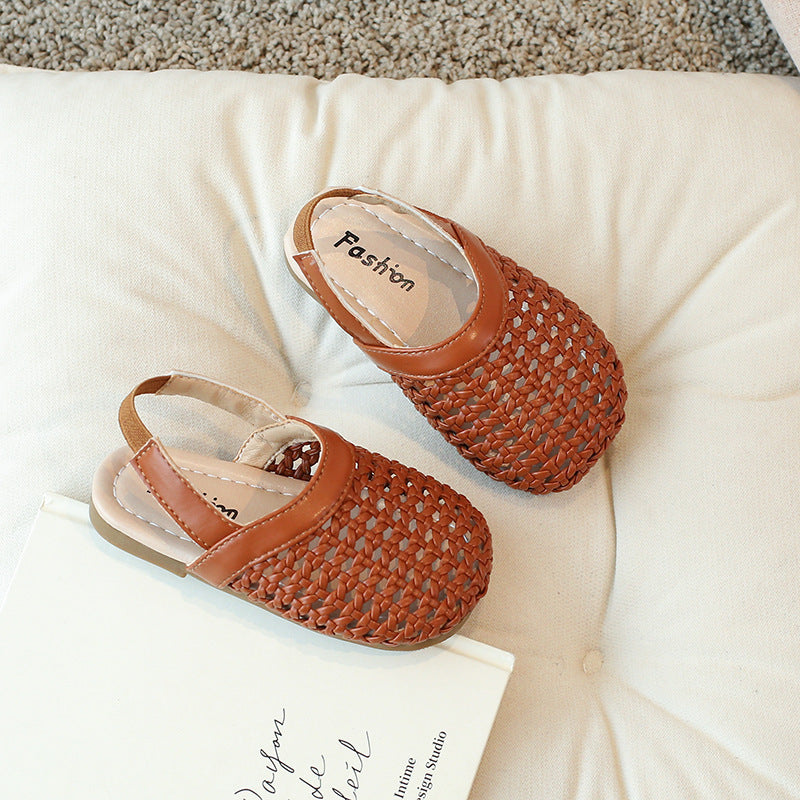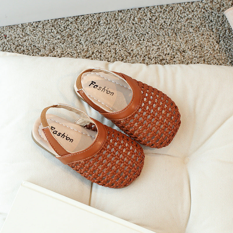 2025 Girls Woven Soft Sole Korean Style Roman Sandals