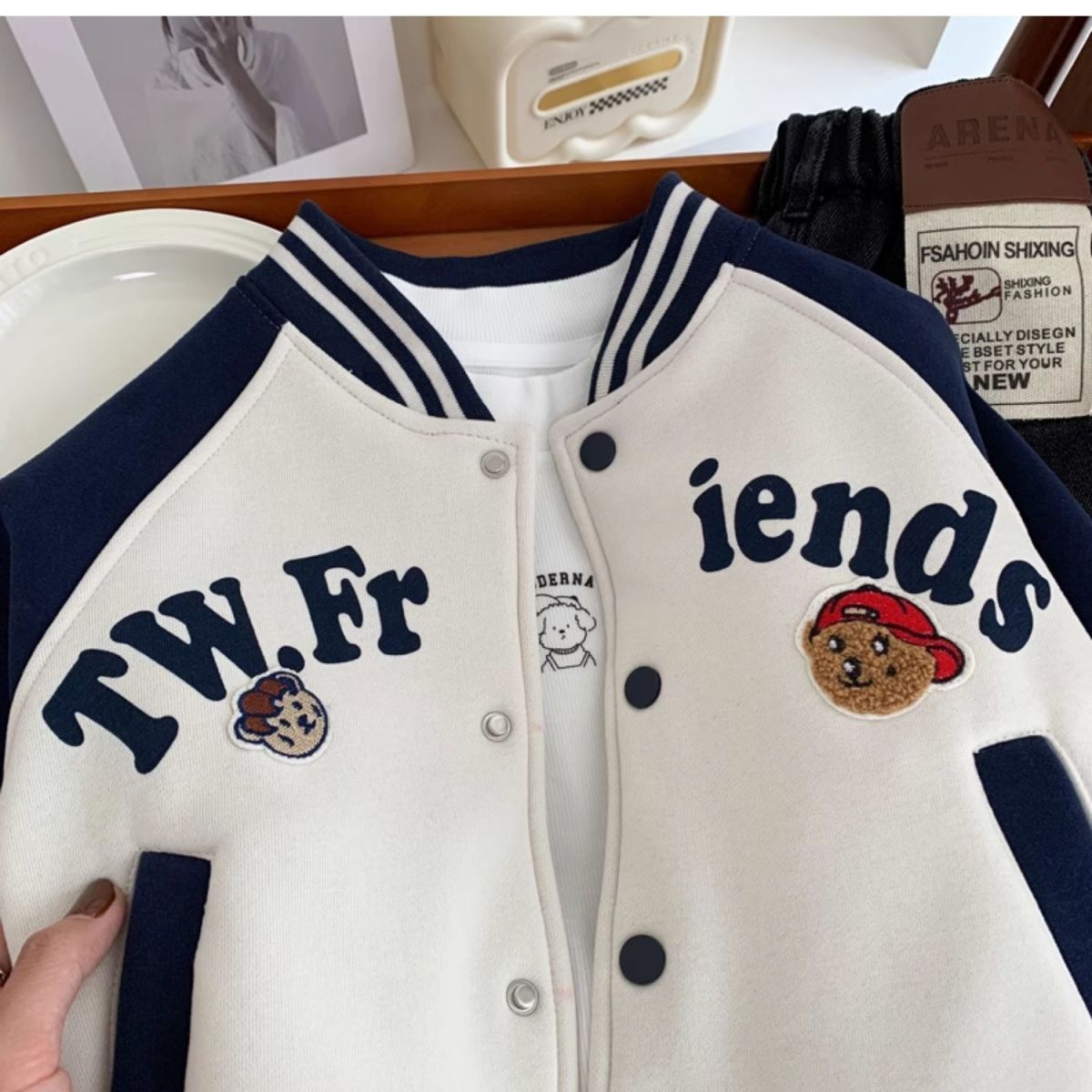 Upgrade your child’s wardrobe with this trendy bear letter jacket—warm, stylish, and perfect for spring and autumn adventures! ✨🧥