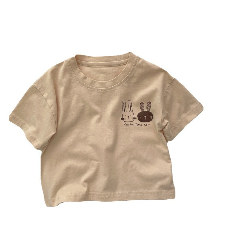 2025 Kids Korean Style Cotton T-Shirt Cute Rabbit Summer Wear