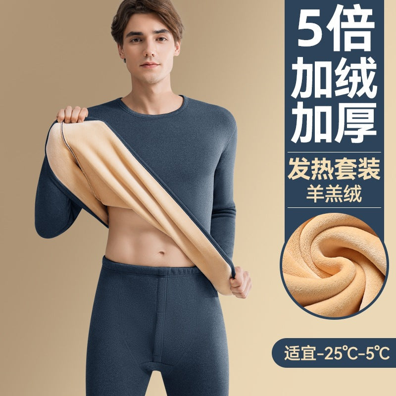 2025 Men’s Lamb Fleece Thermal Suit – Thickened Fleece Autumn