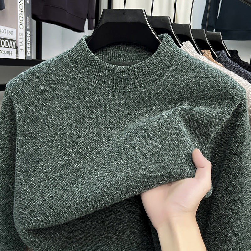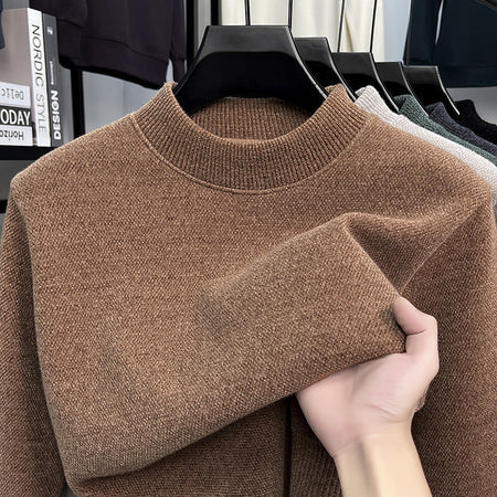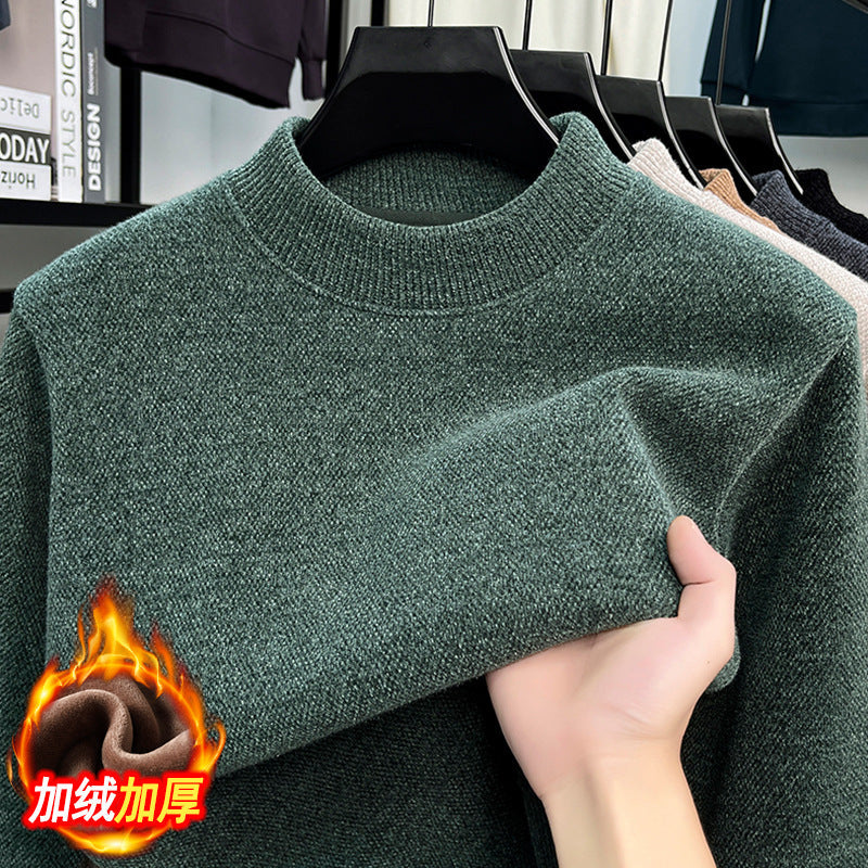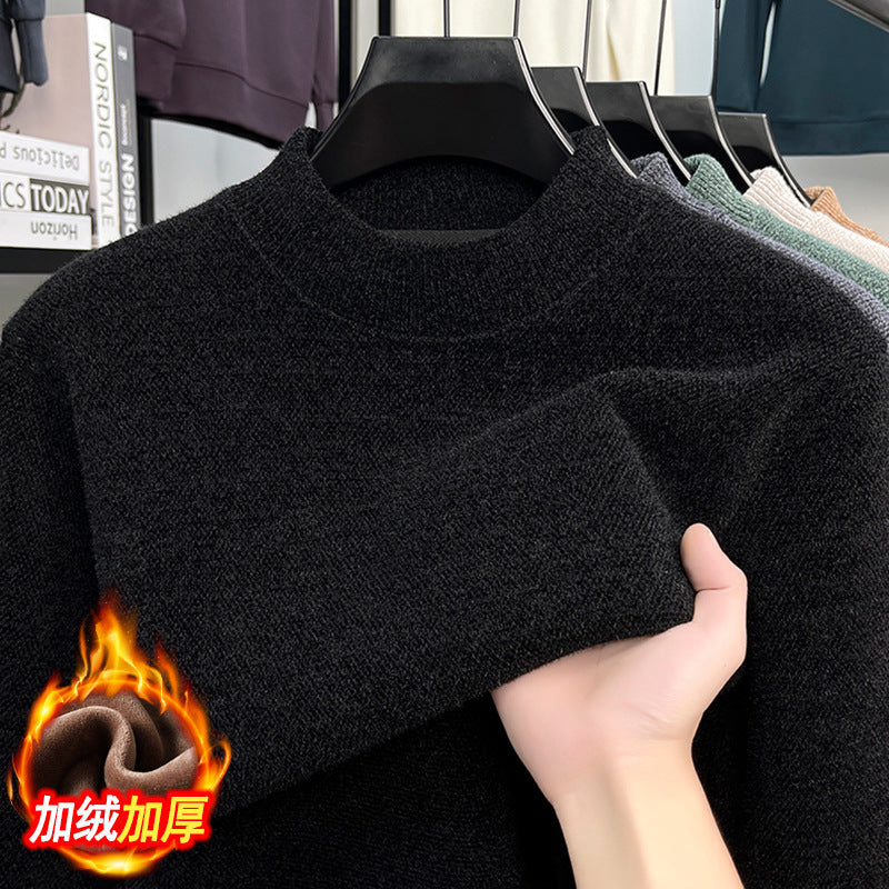 2025 Men’s Plush Half-High Collar Knitted Sweater Warm
