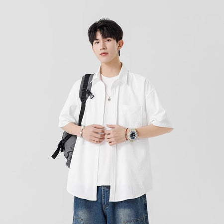 The classic lapel collar design brings a touch of sophistication, while the loose fit ensures freedom of movement and all-day comfort. Whether for casual outings, business casual events, or weekend hangouts, this shirt is both practical and stylish. 🎒💼