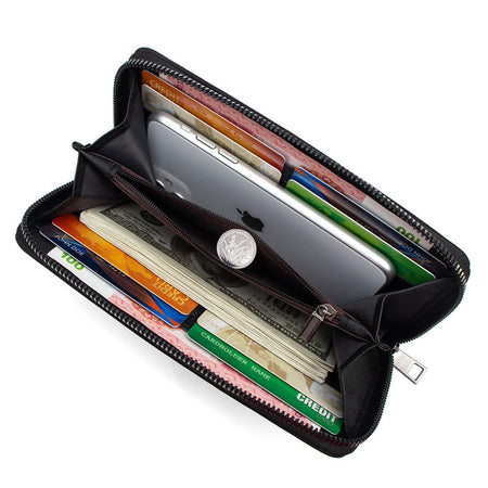 Its sleek long design and secure zipper closure make it ideal for business, travel, and casual outings.