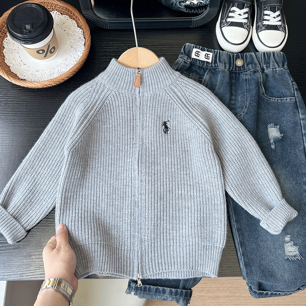 Boys’ Knitted Cardigan – Embroidered Zipper Autumn Sweater