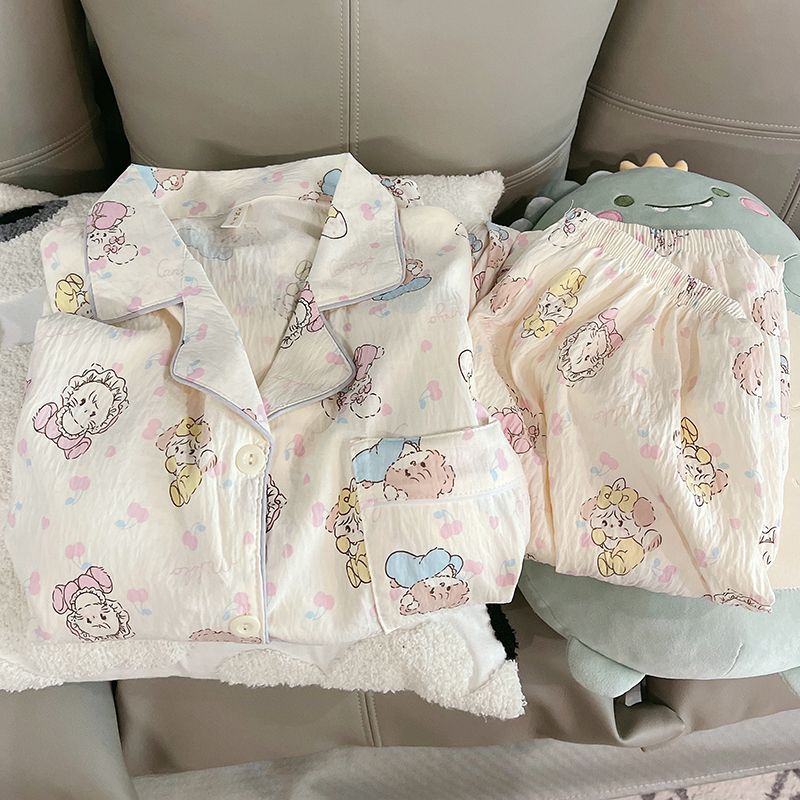 Made with breathable cloud cotton, it feels light as air while keeping you comfy all day. Whether you're chilling at home, sipping tea on the balcony, or catching up on your favorite shows, this cute set is your cozy companion 🎀.