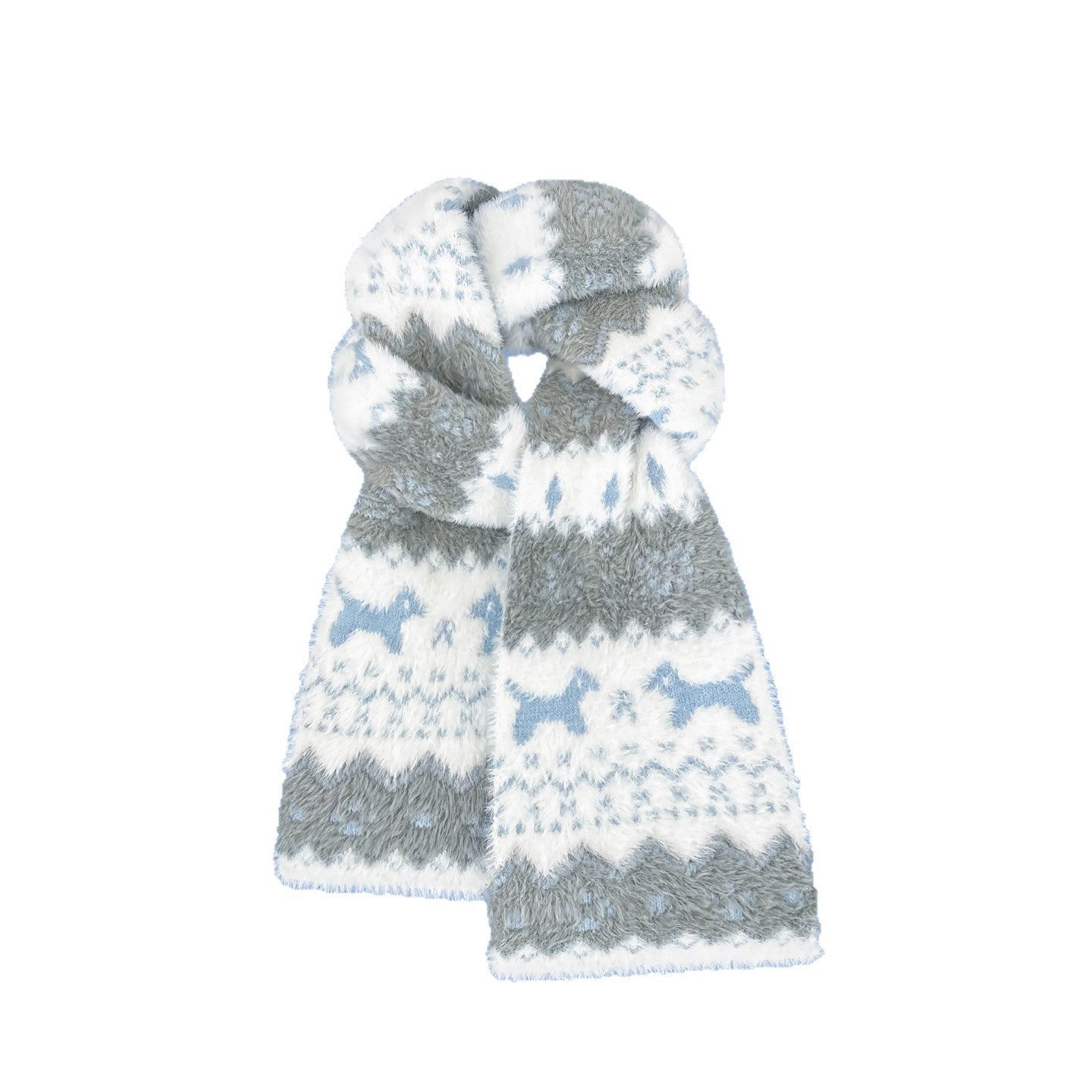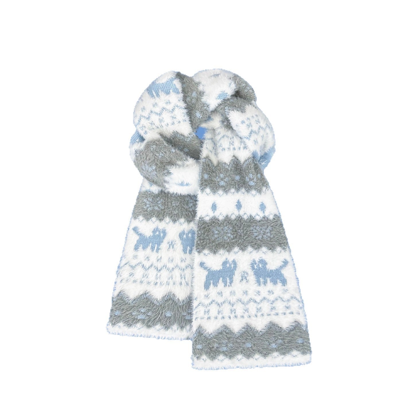 Featuring a cute cat and puppy jacquard pattern with classic Fair Isle design, this scarf combines fun, retro vibes with stylish versatility. Its long, thick design allows you to wrap, drape, or layer for both warmth and fashion. Ideal for daily wear, outdoor activities, or casual meetups, this scarf is a must-have winter accessory.