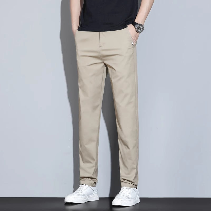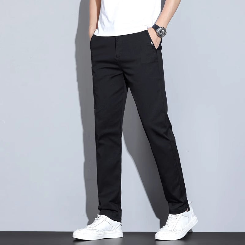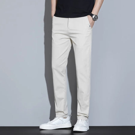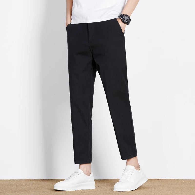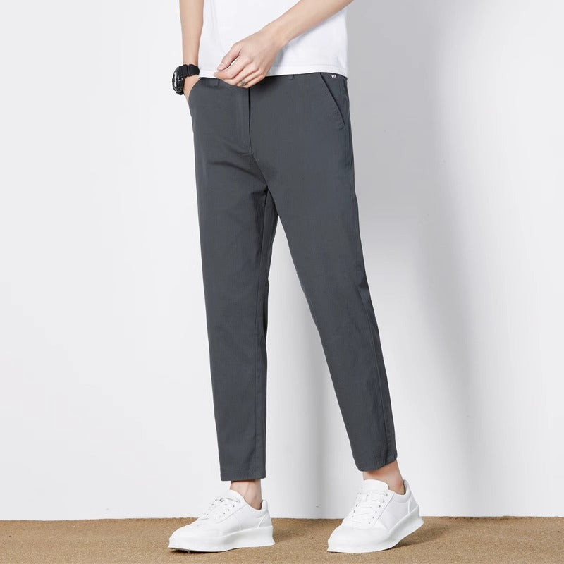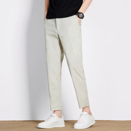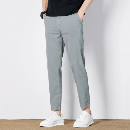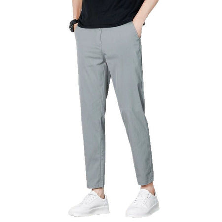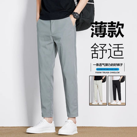 Beat the heat with these men’s ice silk trousers. Lightweight, breathable, and ankle-length, they’re a stylish choice for summer casual wear with a touch of Korean fashion influence.