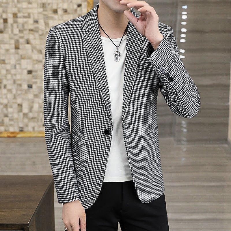 Stay on-trend with this Korean-style small suit jacket featuring a plaid pattern. Designed for 2025 spring and autumn, it offers a casual yet polished look that works for young men and fashion-conscious professionals.
